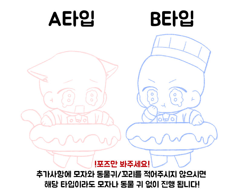 · 작업 사이즈는 1인 500×500, 500dpi 으로 작업합니다. 모자나 동물귀, 꼬리를 감안한 여백이 있습니다.
